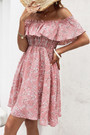 Xs-L Summer New Stylish Floral Batch Printing Stretch Off-The-Shoulder Ruffle Casual Mini Dress