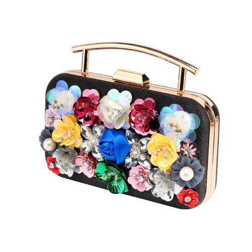 Stylish New Three Colors Flower Rhinestone Sequin Decor Lock Buckle Metal Handle Clutch Bag 19Cm(L)* 4.5Cm(W)* 16Cm(H)US$33.42